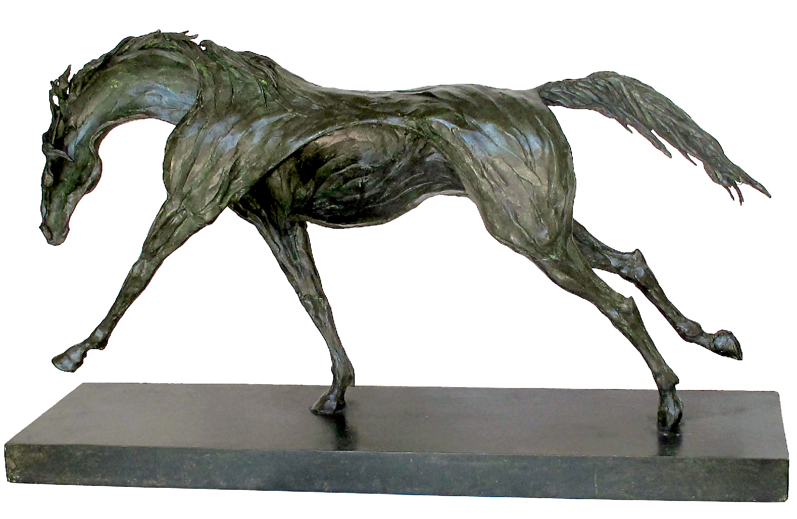 Inspired by the equine universe and animal expressiveness, her pieces capture moments of suspended movement with lines that evoke emotion and balance. Cast with the lost-wax method, her bronzes include both original and limited editions, each individually finished to reveal the vitality of form and nuances of this timeless material.